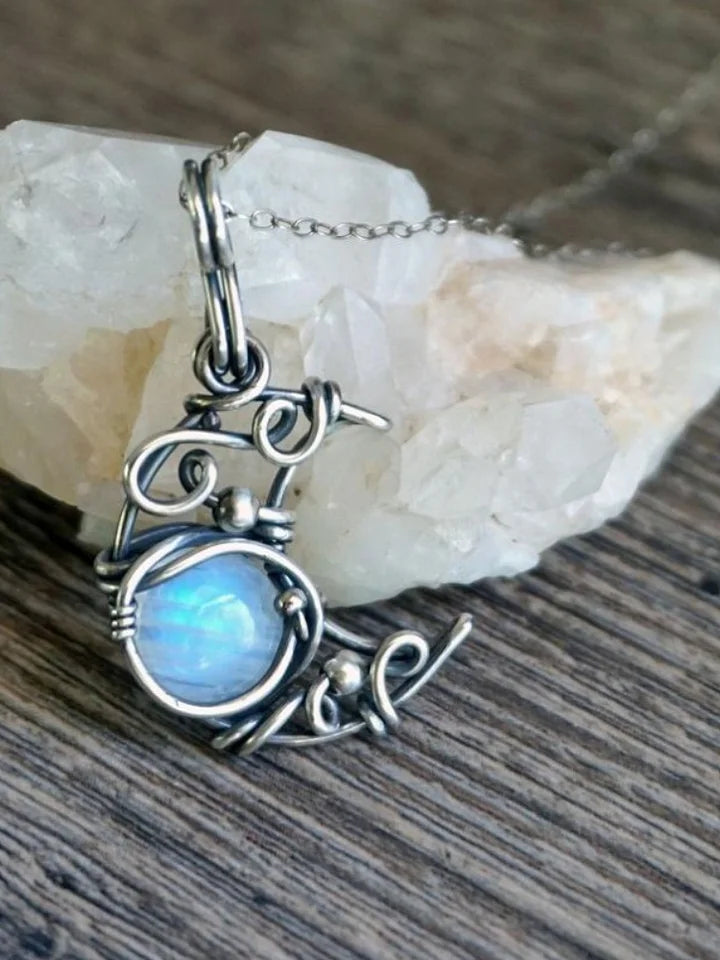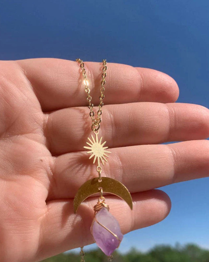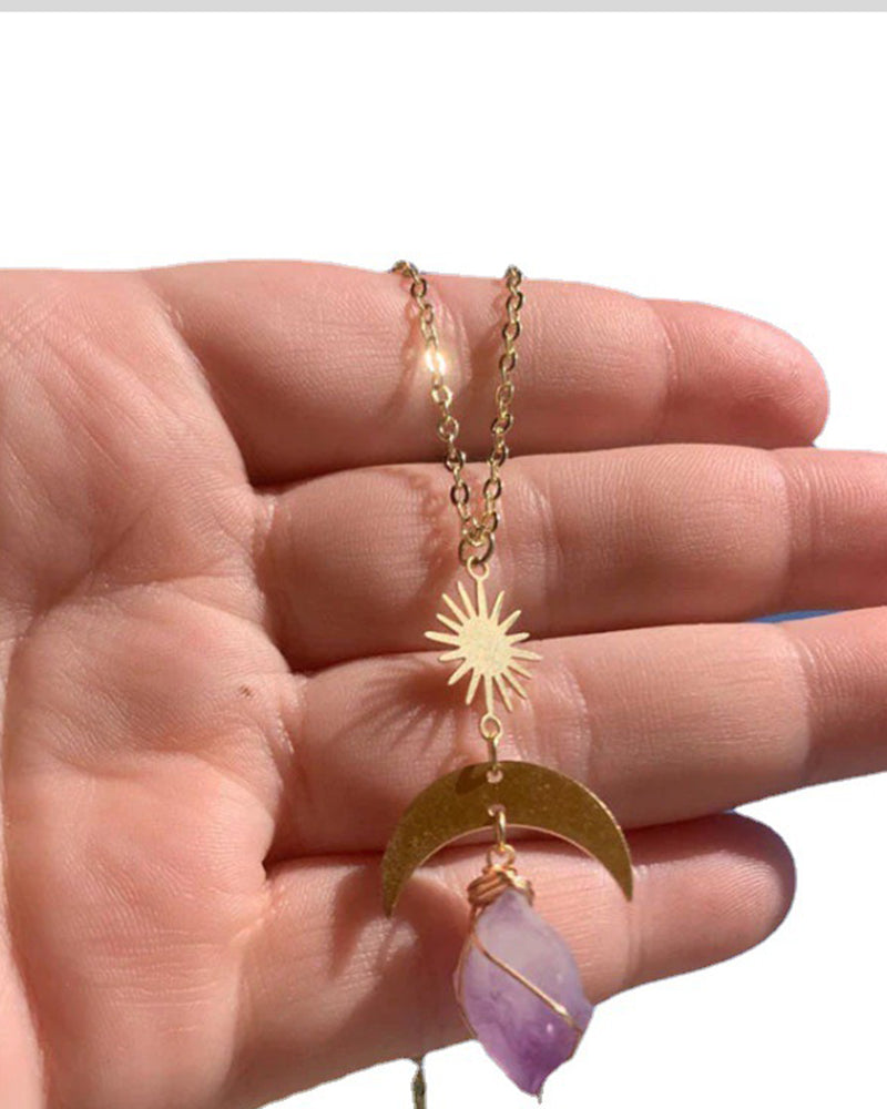 Crystal Rough Star Moon Purple Crystal Moon Necklace