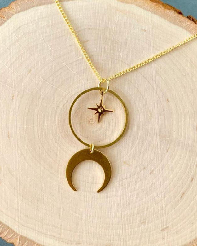 Crescent Moon Necklace Pendant Purple Crystal Golden Moon Jewelry