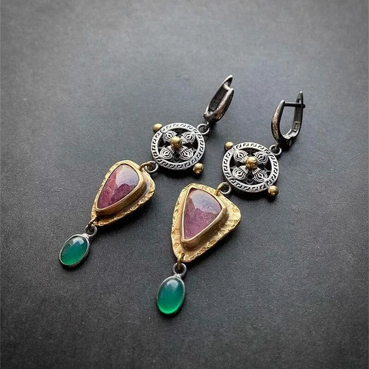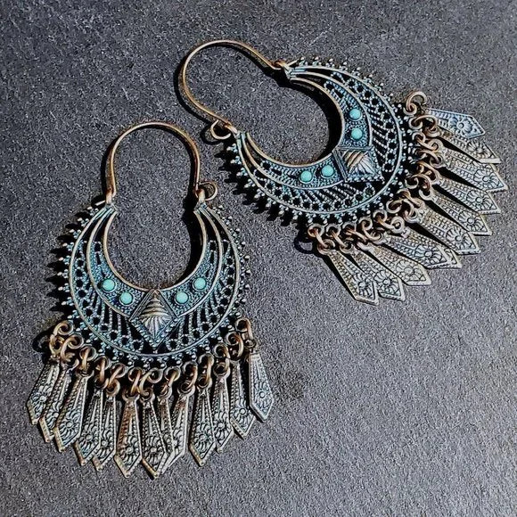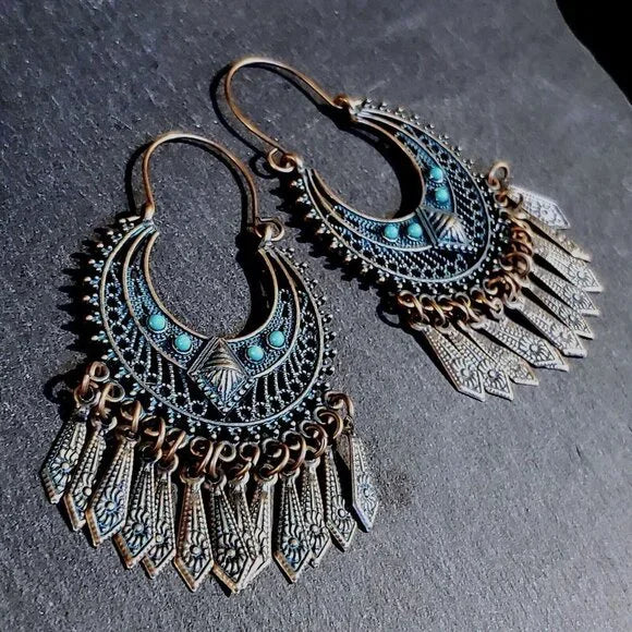 Vintage Tribal Blue Gemstone Distressed Earrings