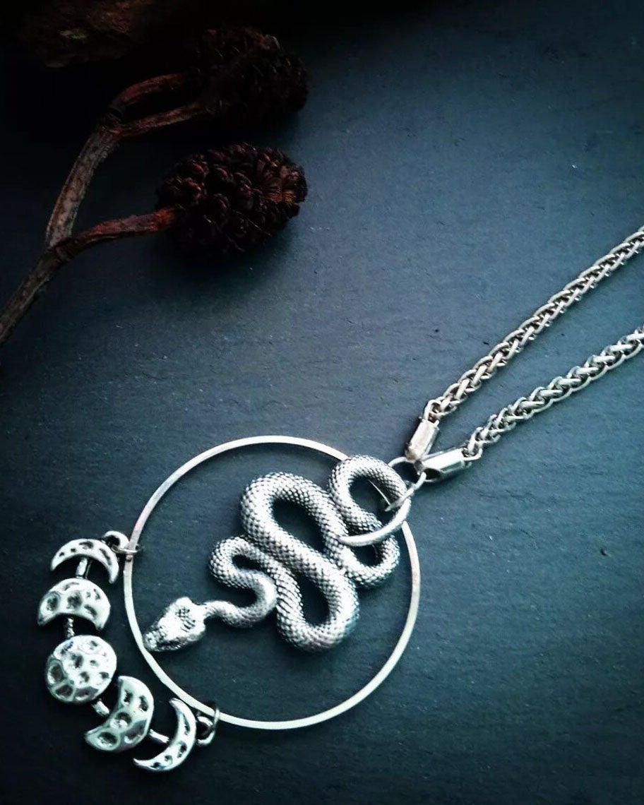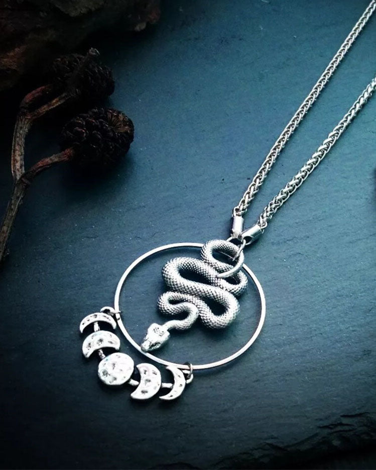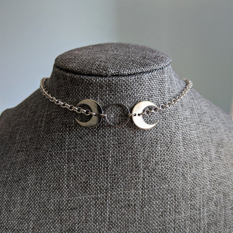 Gothic Style Hollow Moon Pendant Halloween Necklace
