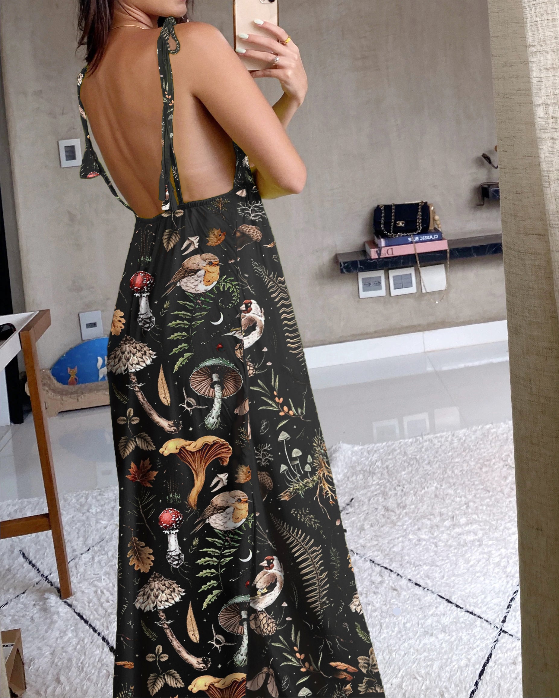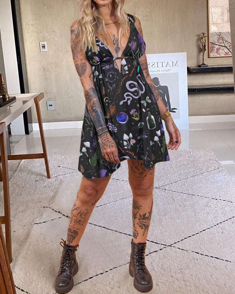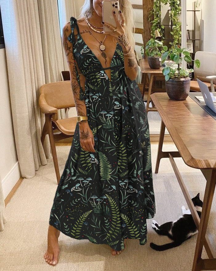 Mushrooms Fairyland Forest Printed V-neck Jumpsuit
