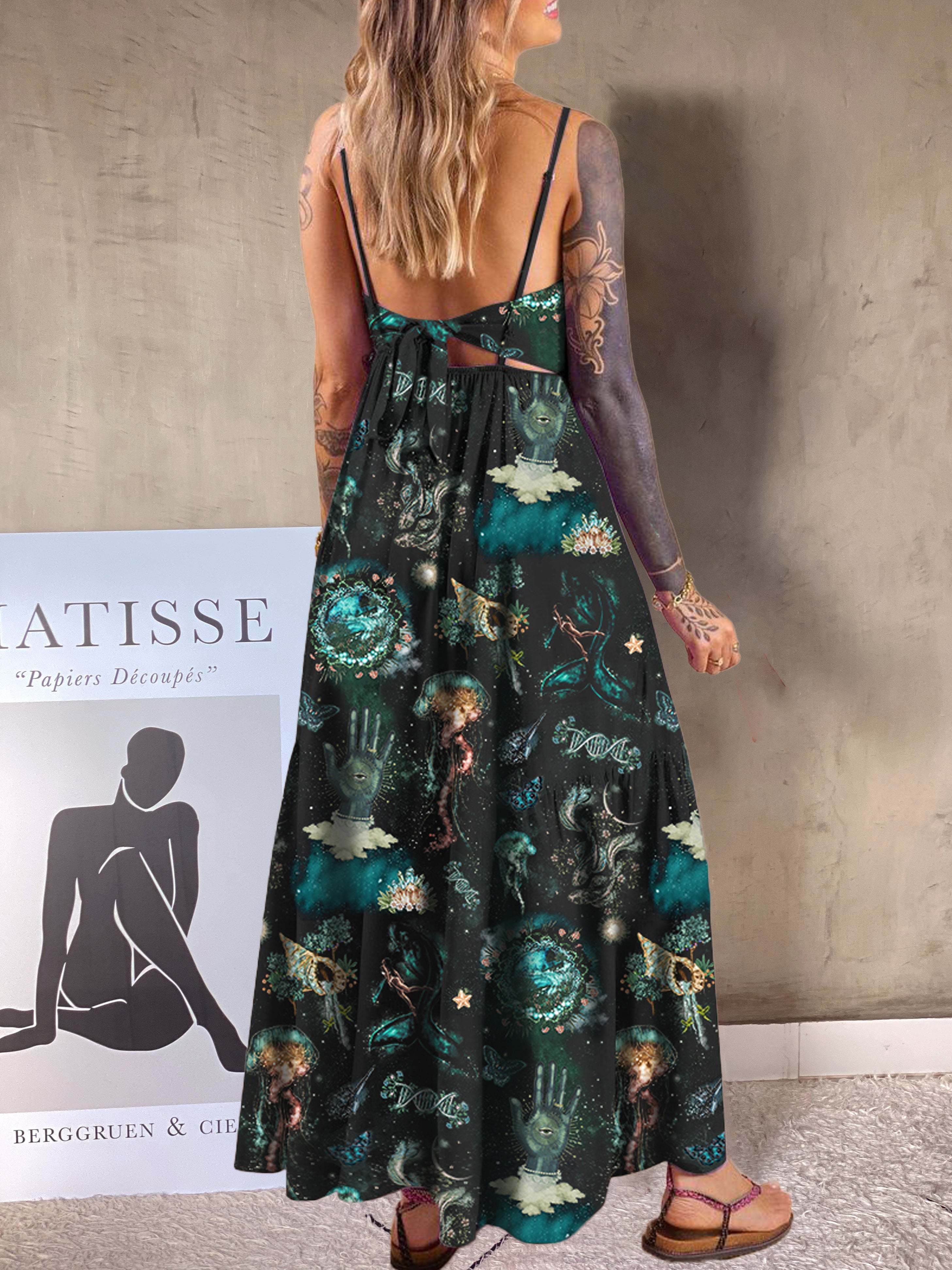 Witchy Moon Phase Signs Printed Cover-up Maxi Dress