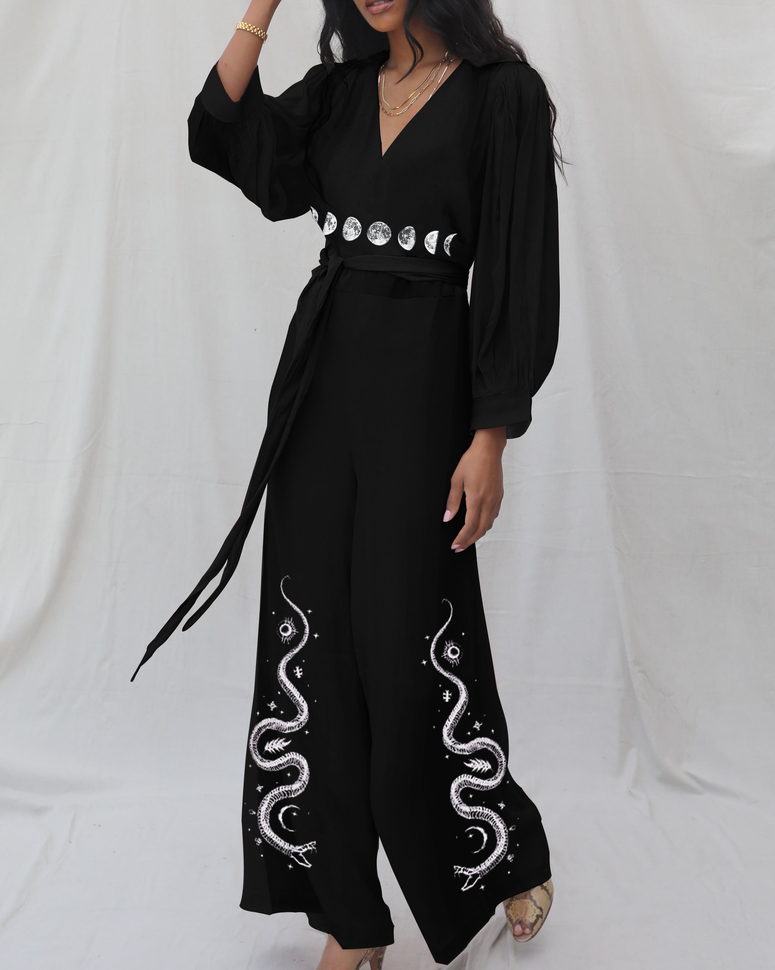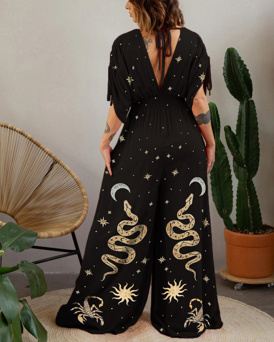 Mystical Moon and Snake Graphic Position Print Jumpsuit