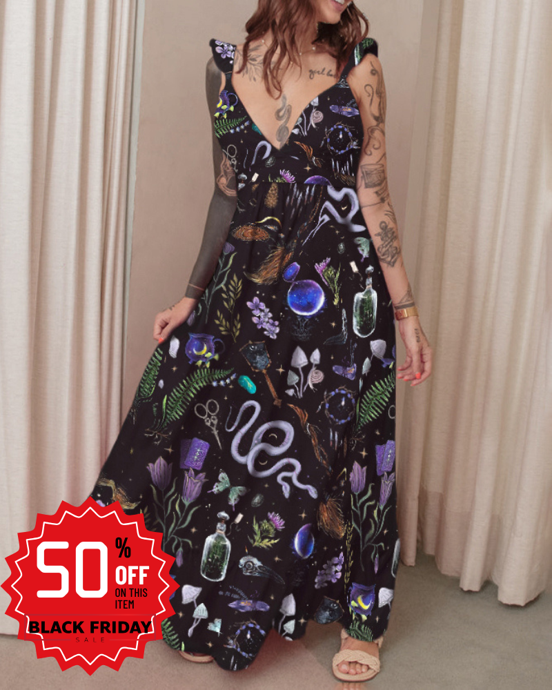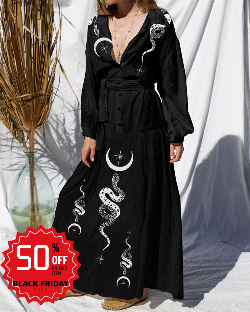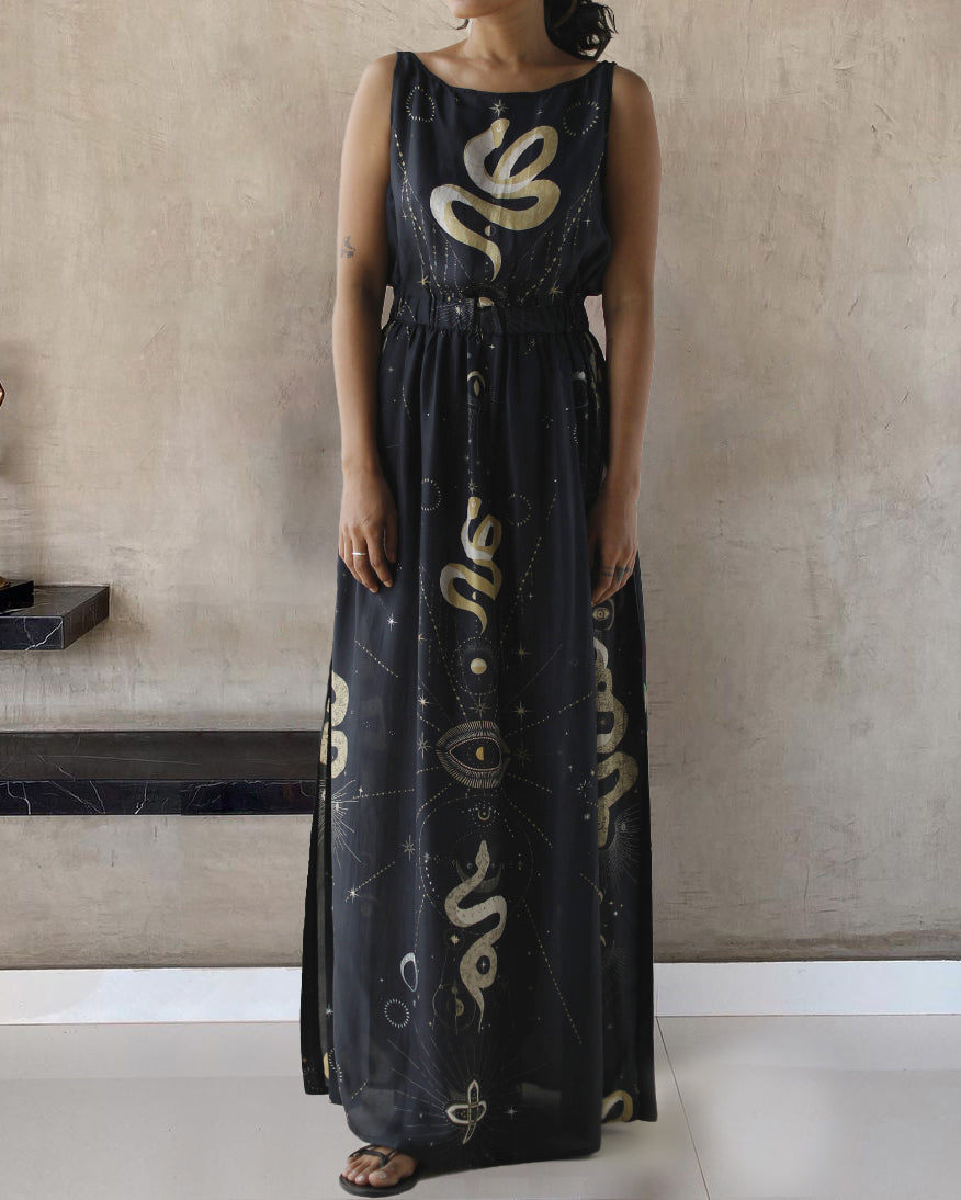 Mysterious Snake With Moon Printed Maxi Dress