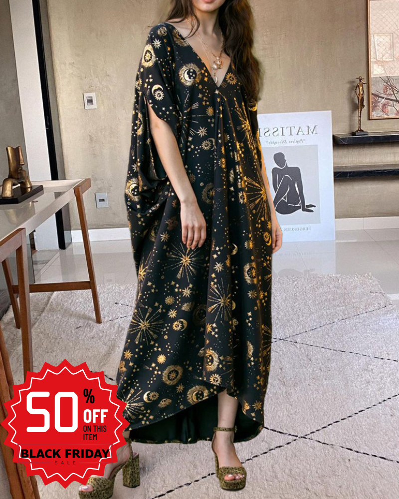Mystic Solar Gilded Printed Kimono Maxi Dress