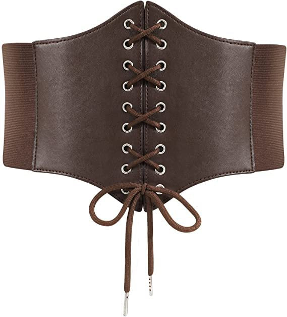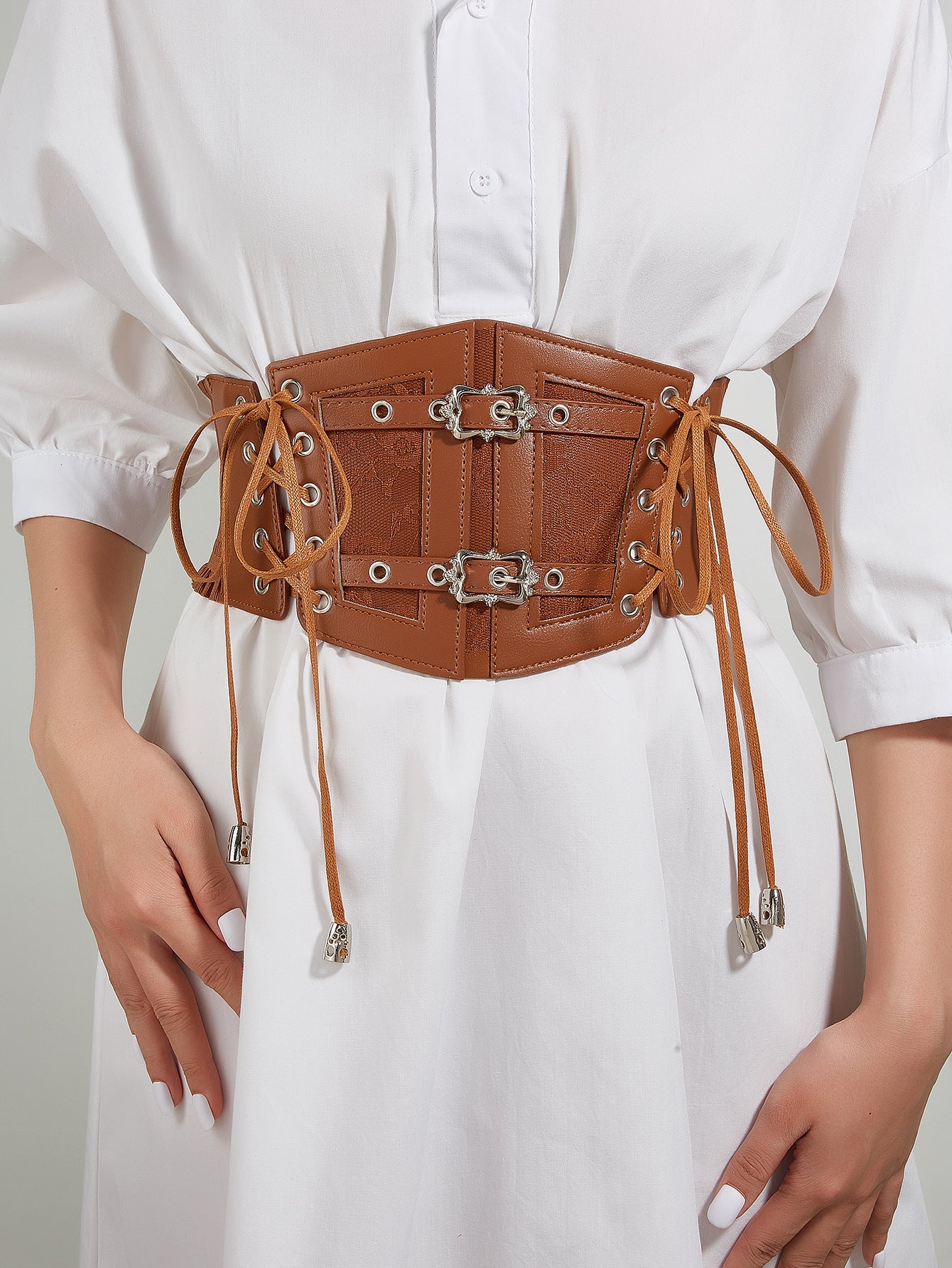 Brown Lace Strap Double Small Day Buckle Lace Waistband
