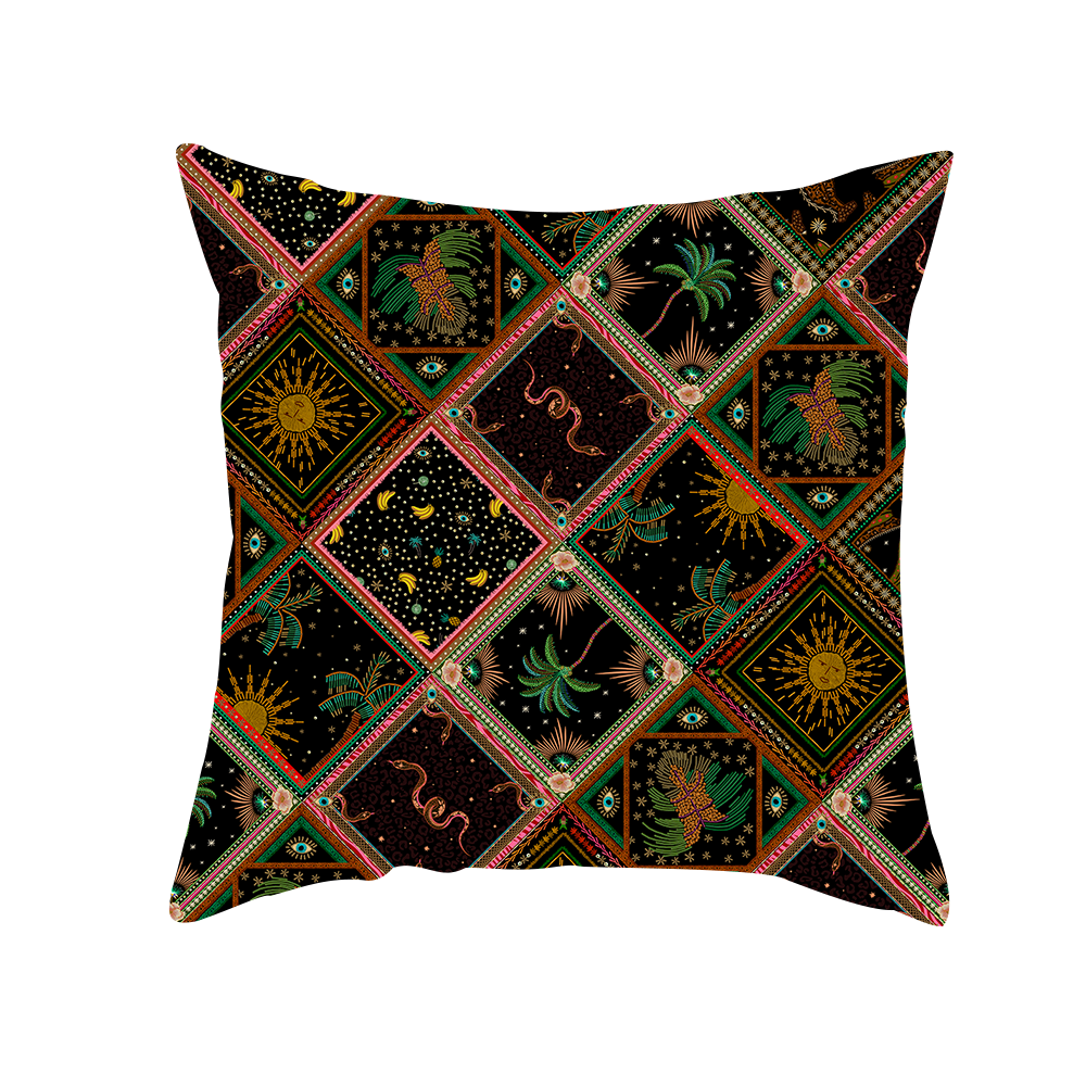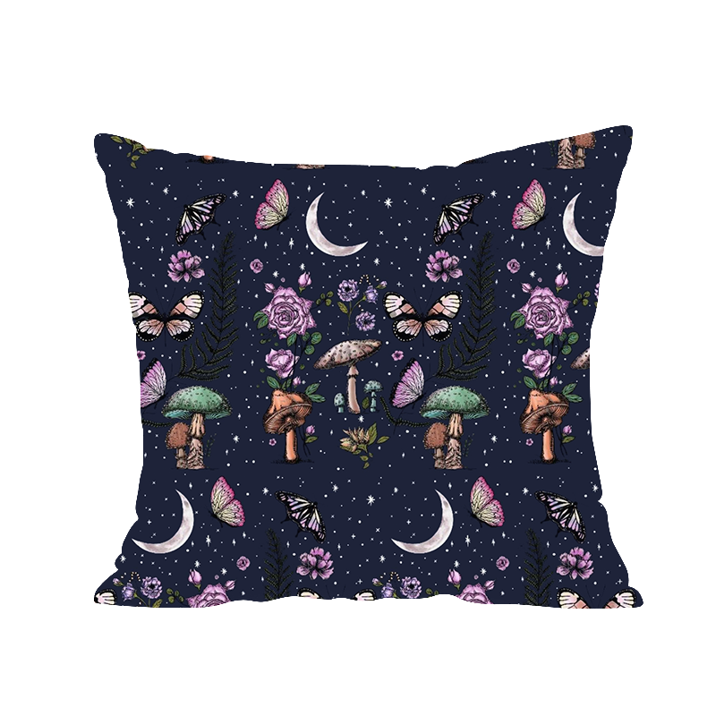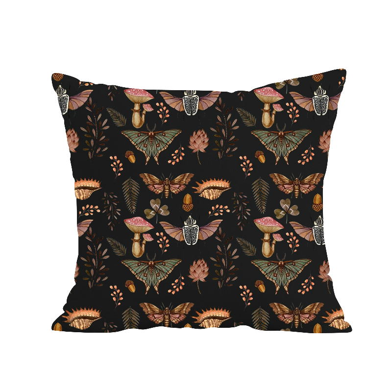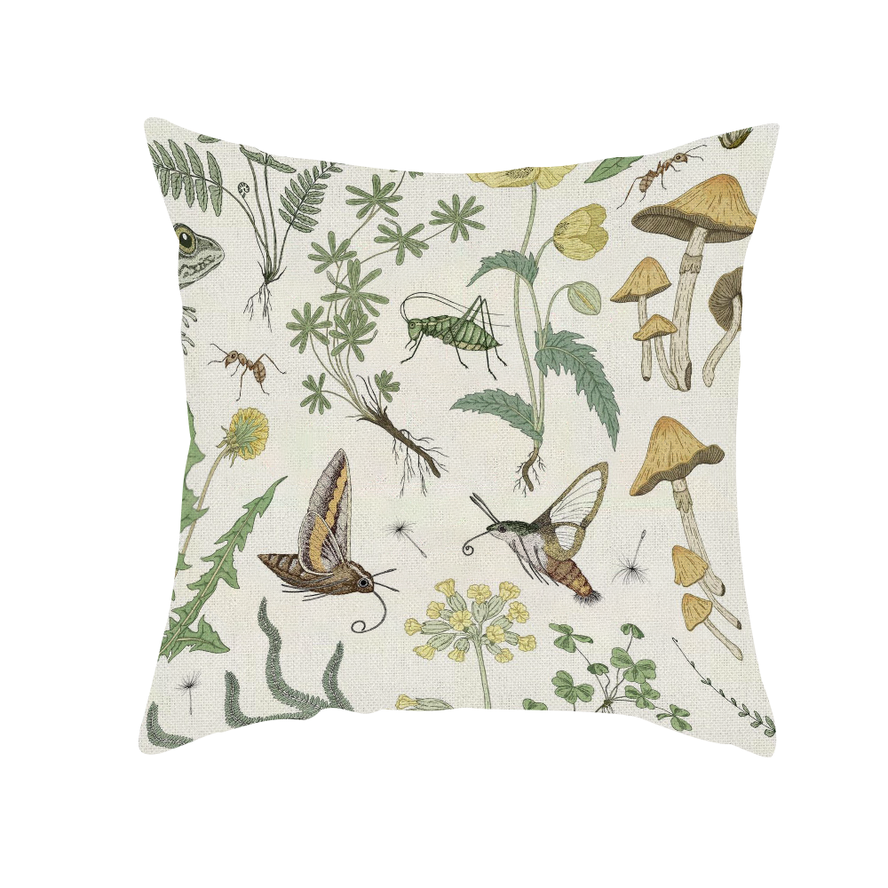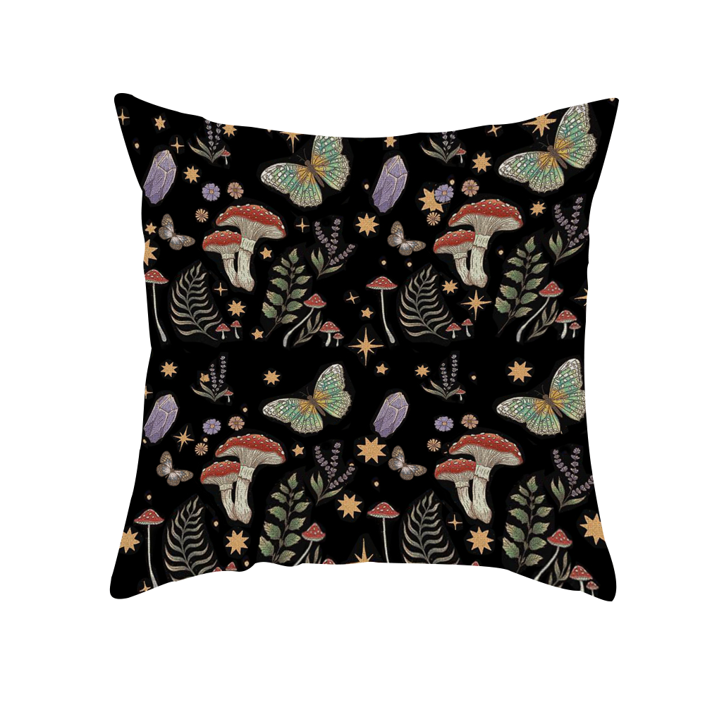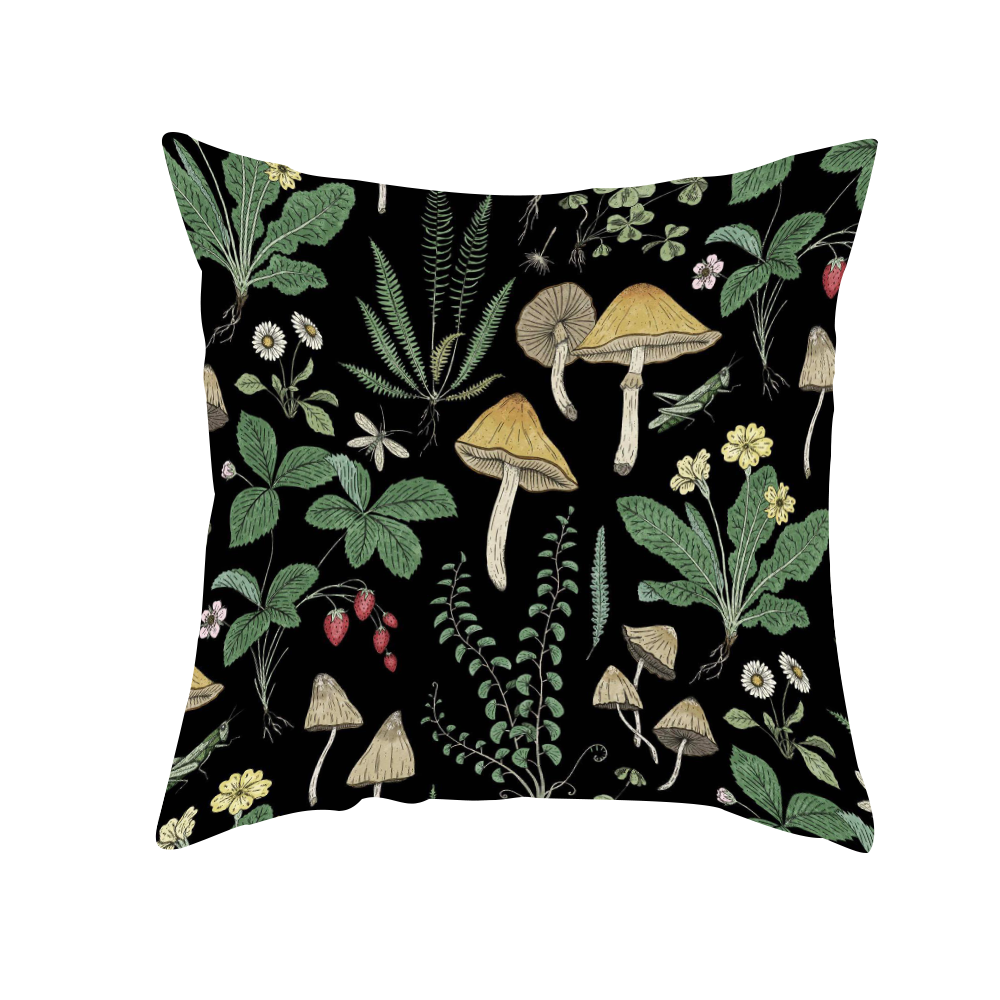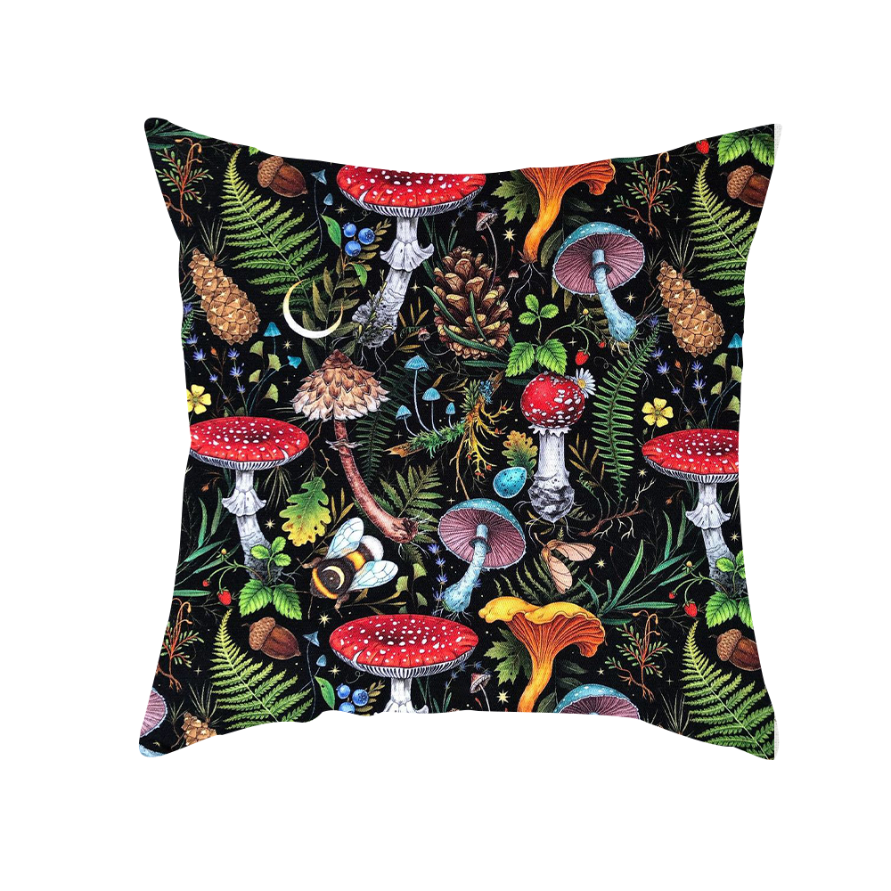 Colorful Poisonous Mushrooms and Snails Print Cushion