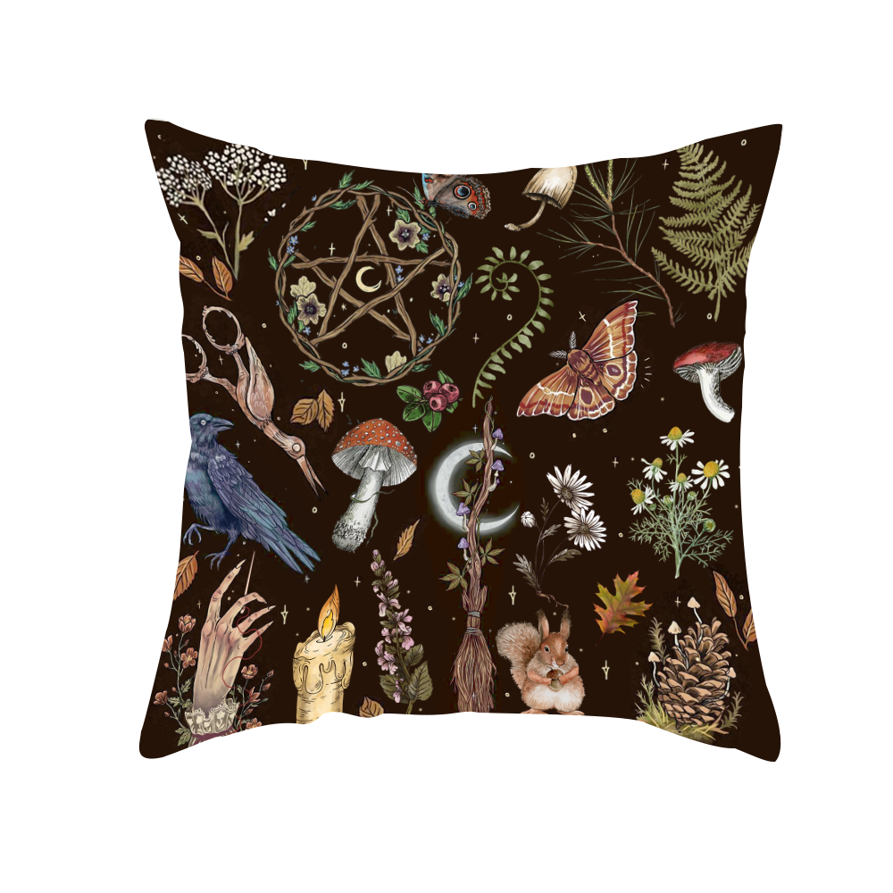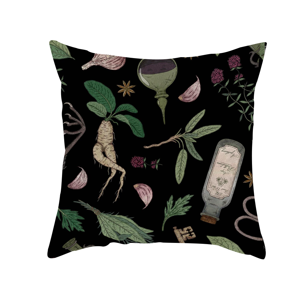 Forest Magic Potion Bottle Mandragora Print Cushion