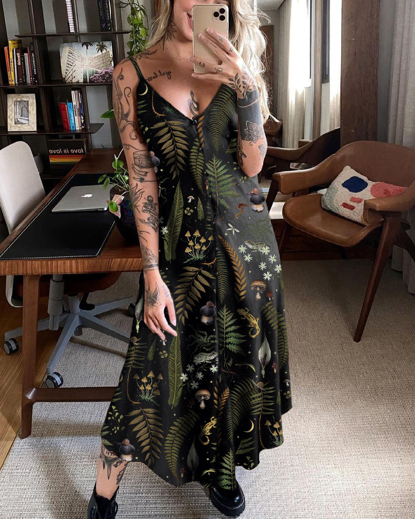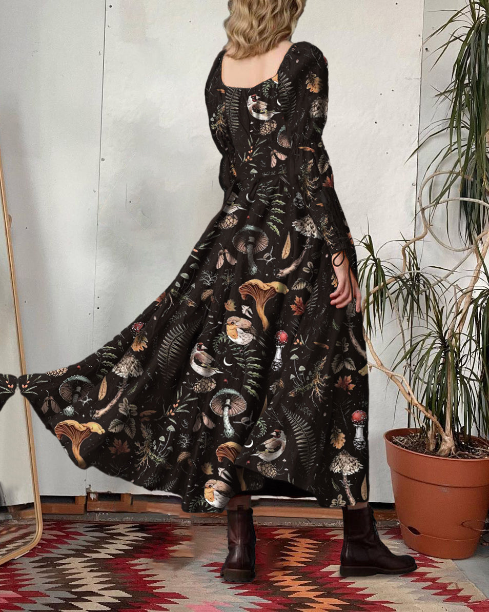 Mushrooms Fairyland Forest Printed Maxi Dress