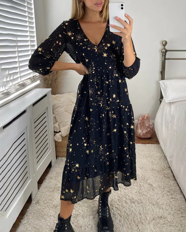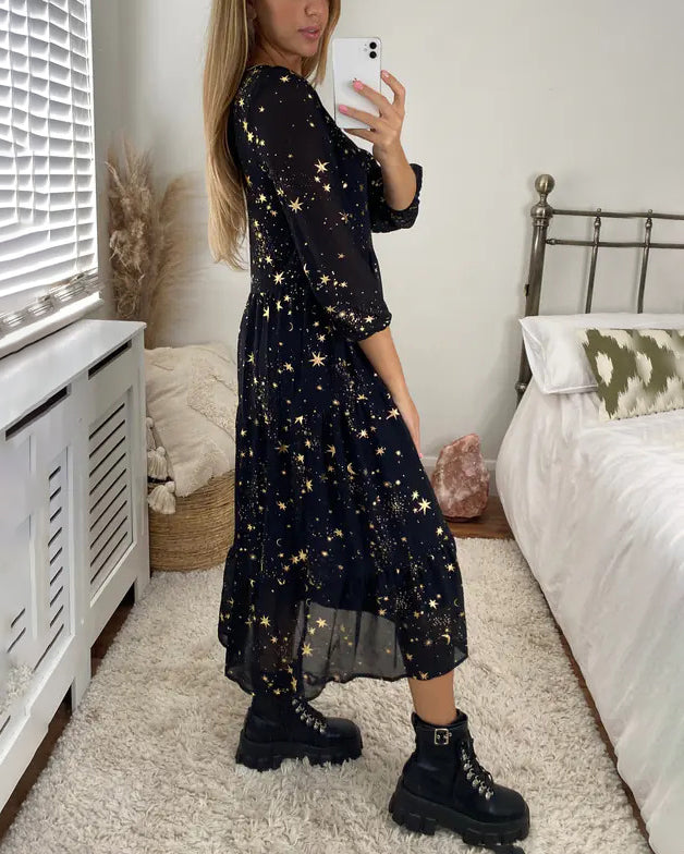 Magical Starry Stars Printed Loose Midi Dress