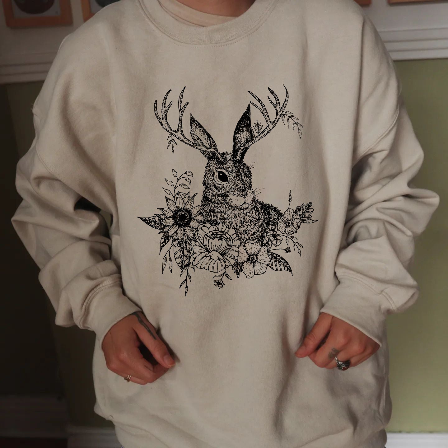 Bunny with Antlers Printed Casual Sweatshirt