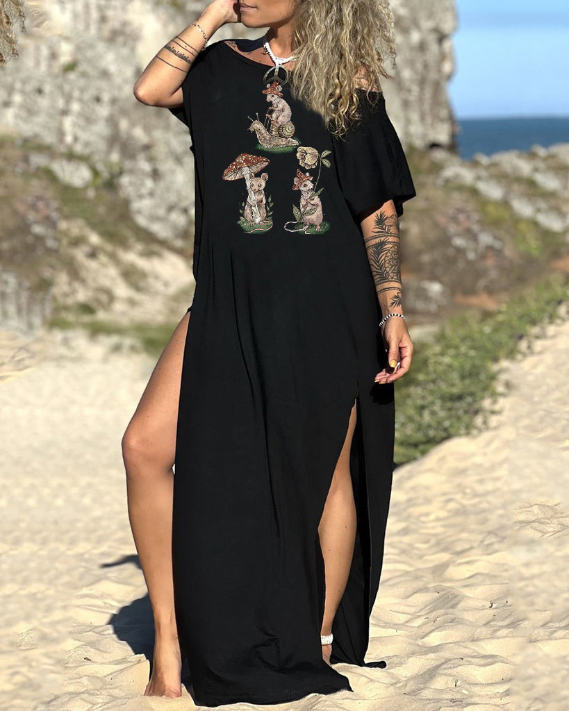 Rabbit Family Casual Slit Dress