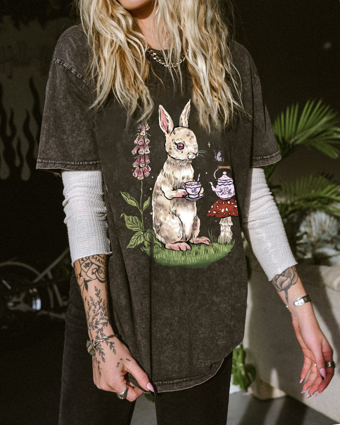 Wonderland Rabbit Printed Casual Oversized T-shirt