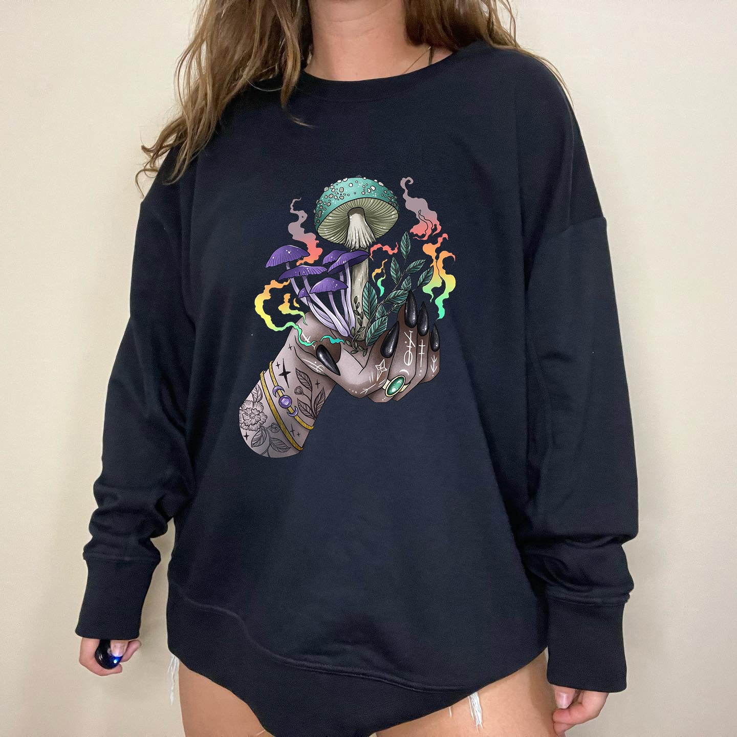 Season of witch mushrooms garden Printed Casual Sweatshirt