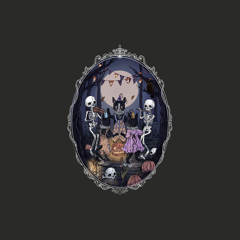 Cat Spooky & Skeleton Doll Printed Casual Sweatshirt