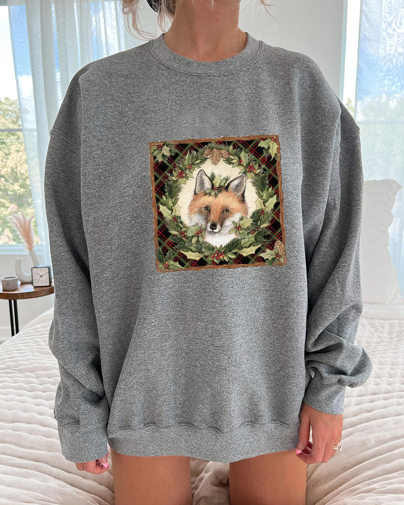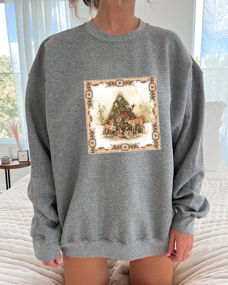 Christmas Animal Family Frame Printed Casual Sweatshirt