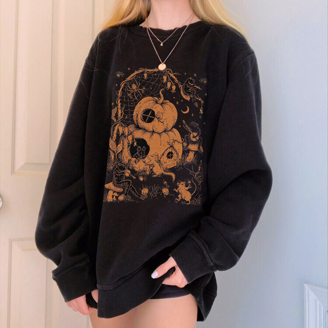 Halloween Cottage Pumpkin Paradise Printed Casual Sweatshirt