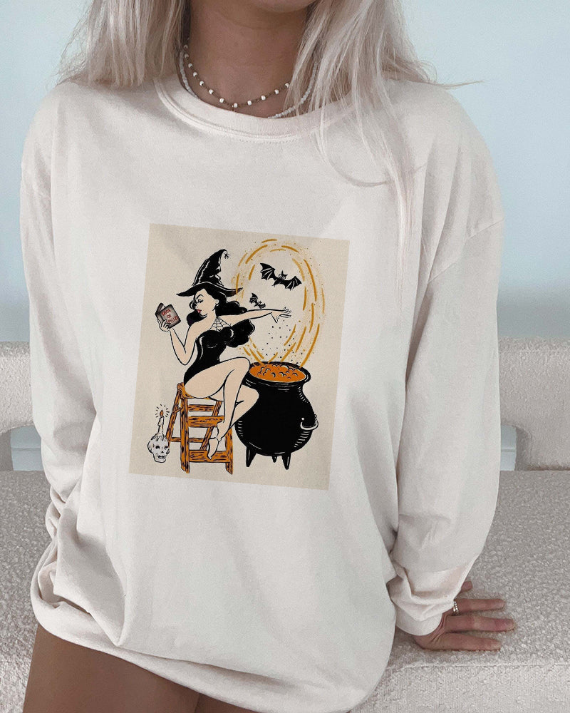 Halloween Witchy Spooky Printed Casual Sweatshirt