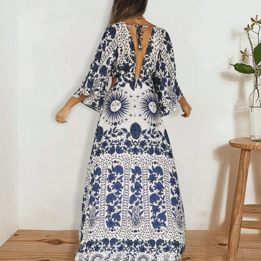 Luna Solar & Stars Printed 3/4 Sleeves Maxi Dress