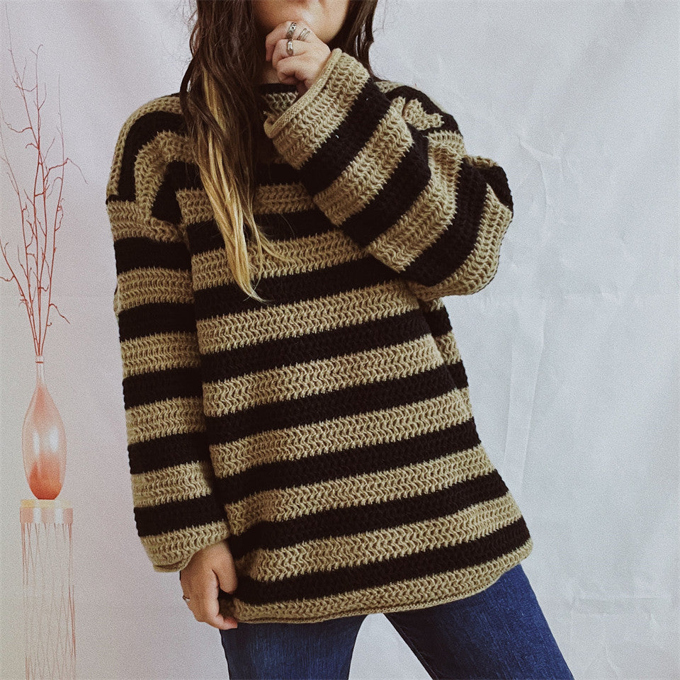 Thick-Line Long-Sleeved Turtleneck Knitted Pullover Sweater
