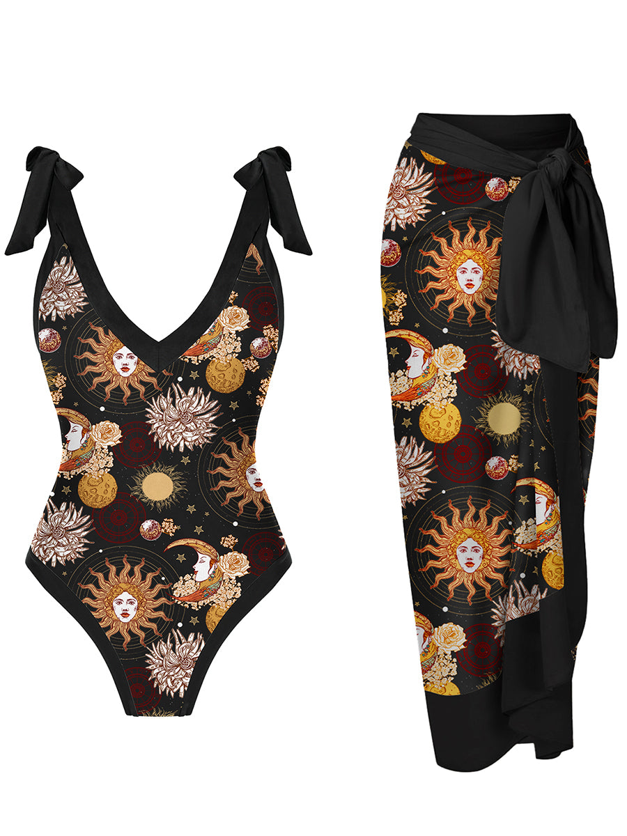 Moonlight Carnival Pattern Print One Piece & Sarong