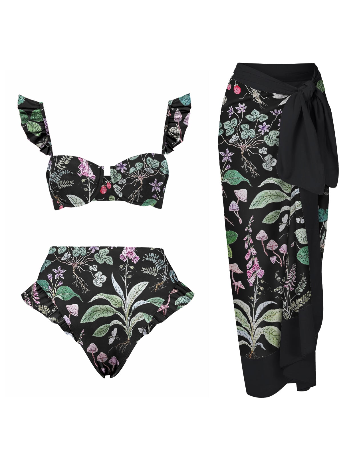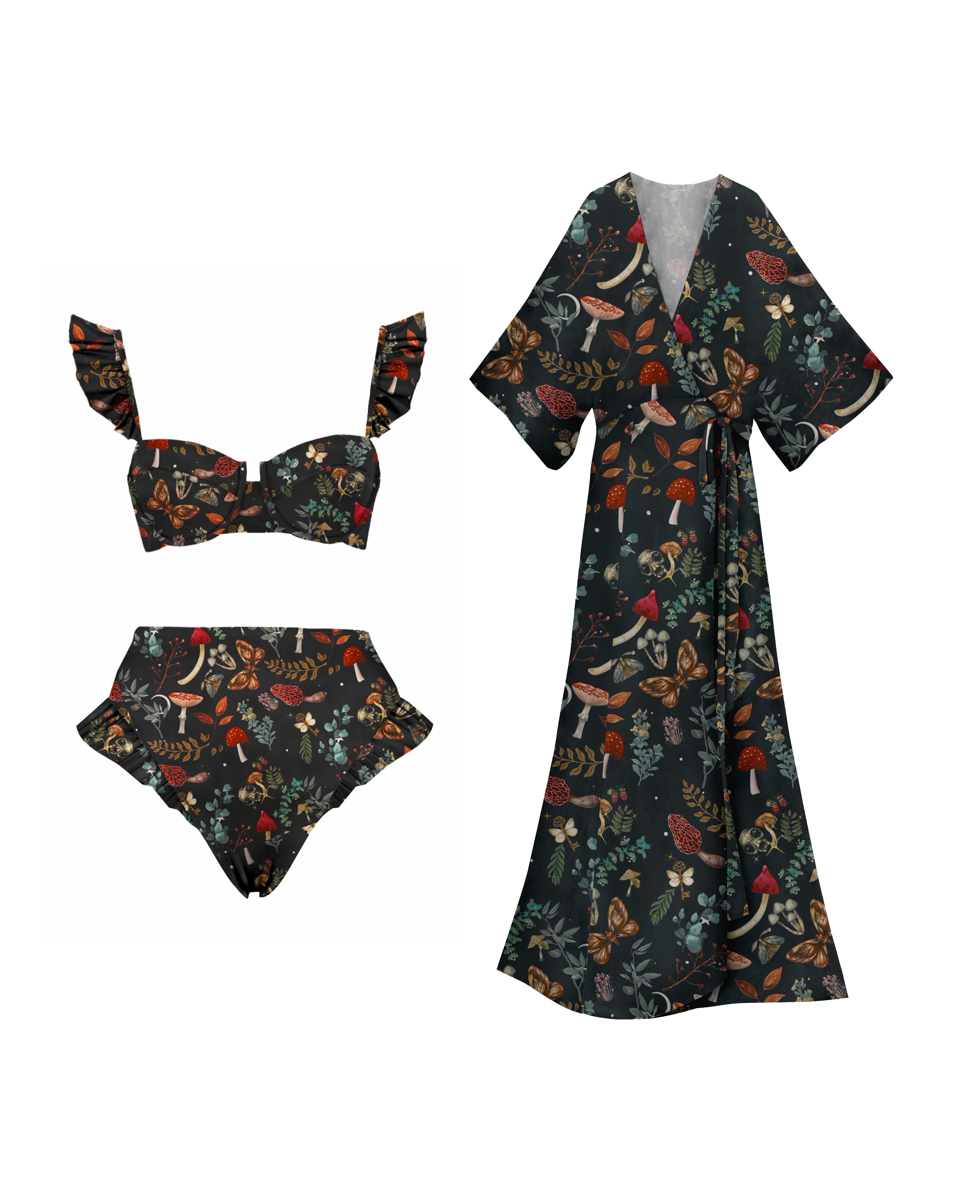 Fungis Foest Printed Ruffle Bikini Set & Sarong