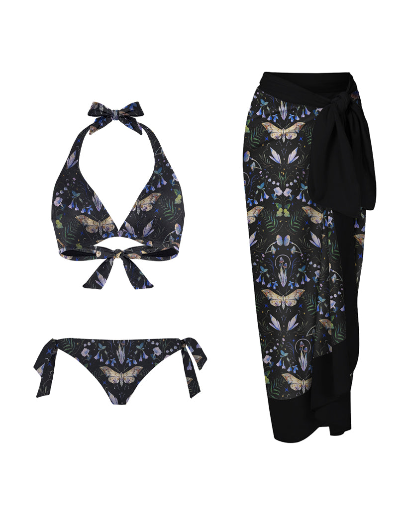 Mystic Moths Fairyland Printed Bikini Set and Sarong