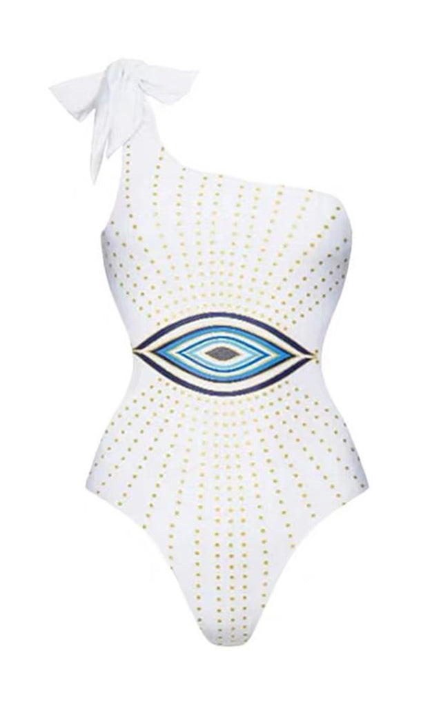 Eye Of The Moon Belly-Covering Backless Graphic Printed One Piece & Mesh Skirt
