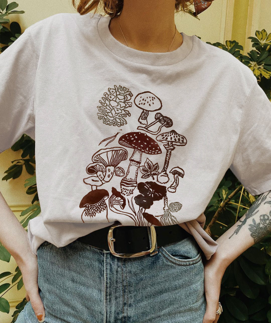 Mysterious mushroom print T-shirt