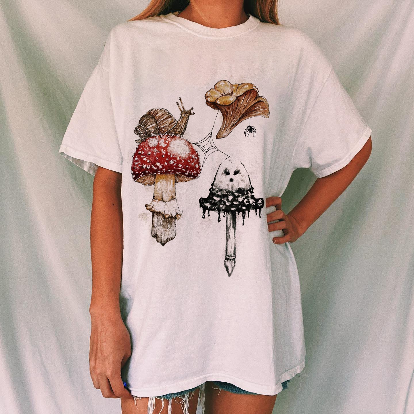 Snail and Mushroom Tour Printed Casual Oversized T-shirt
