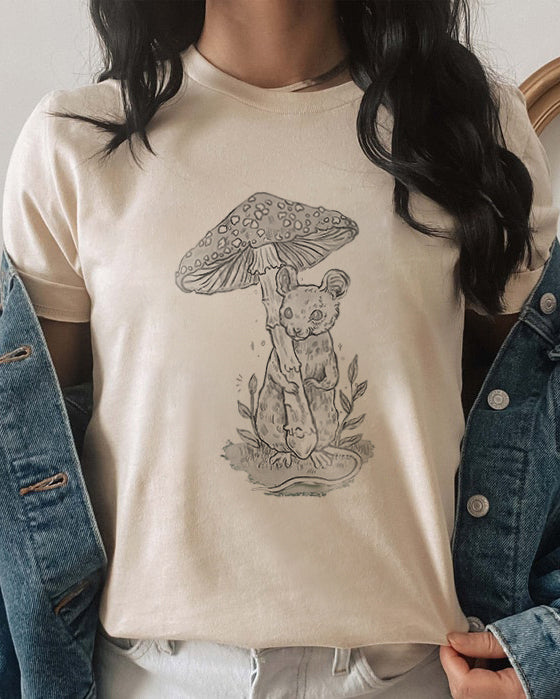 Forest Mushroom Animal Printed Casual Oversized T-Shirt