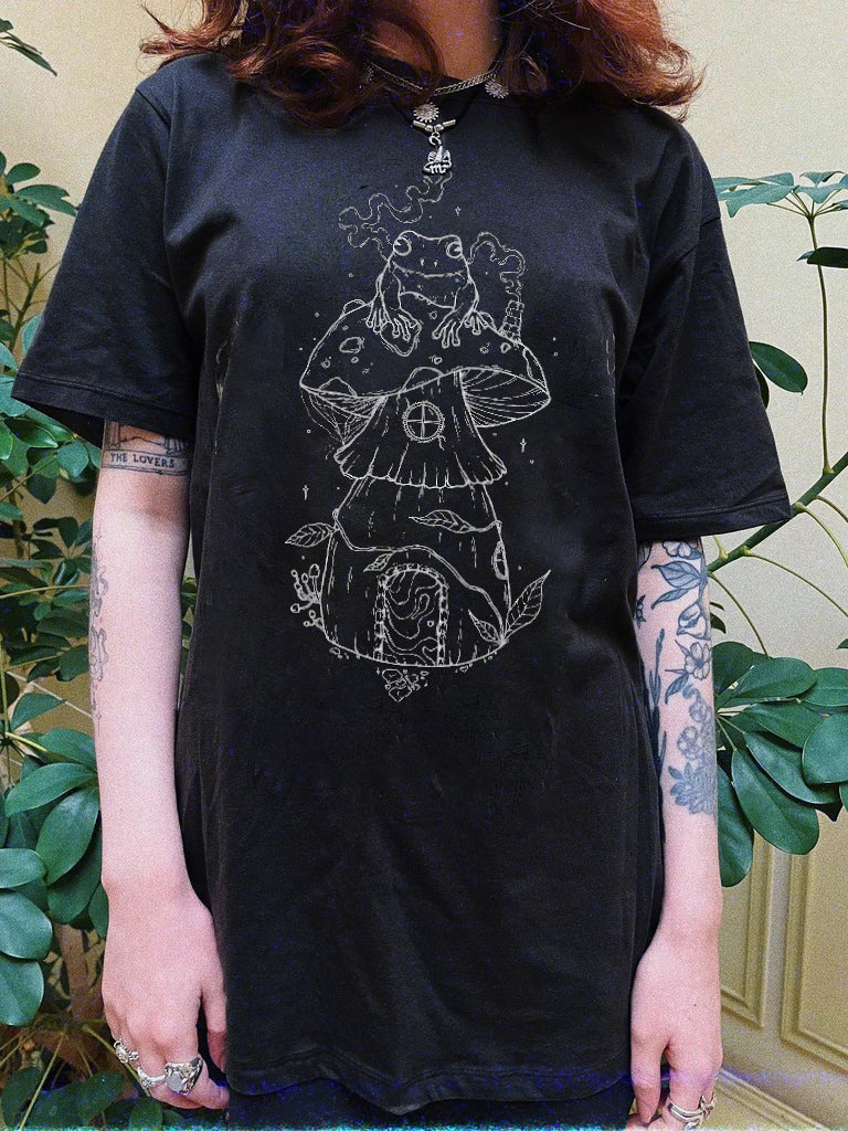 Mushrooms House & Frog Printed Casual Oversized T-Shirt