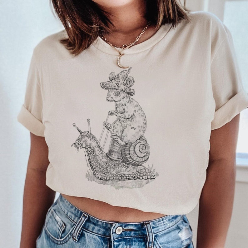 Nature Animal Mushroom Printed Casual Oversized T-Shirt