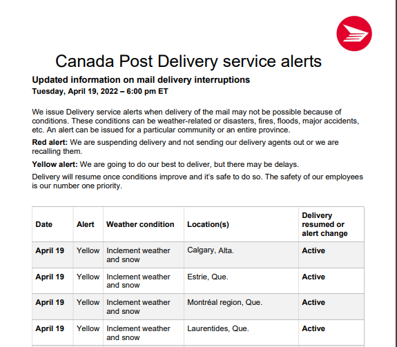 In response to feedback from Canada, some areas are currently affected by local weather, and the delivery time will be delayed to a certain extent under the yellow warning. Please refer to the screenshot below for the affected areas.