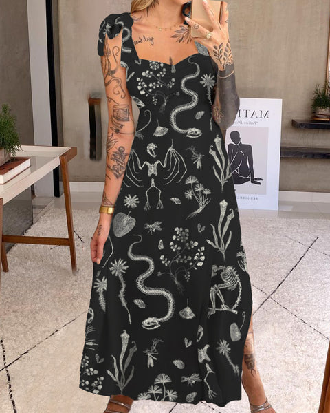 Fantastic Animal Skeleton Printed Maxi Dress