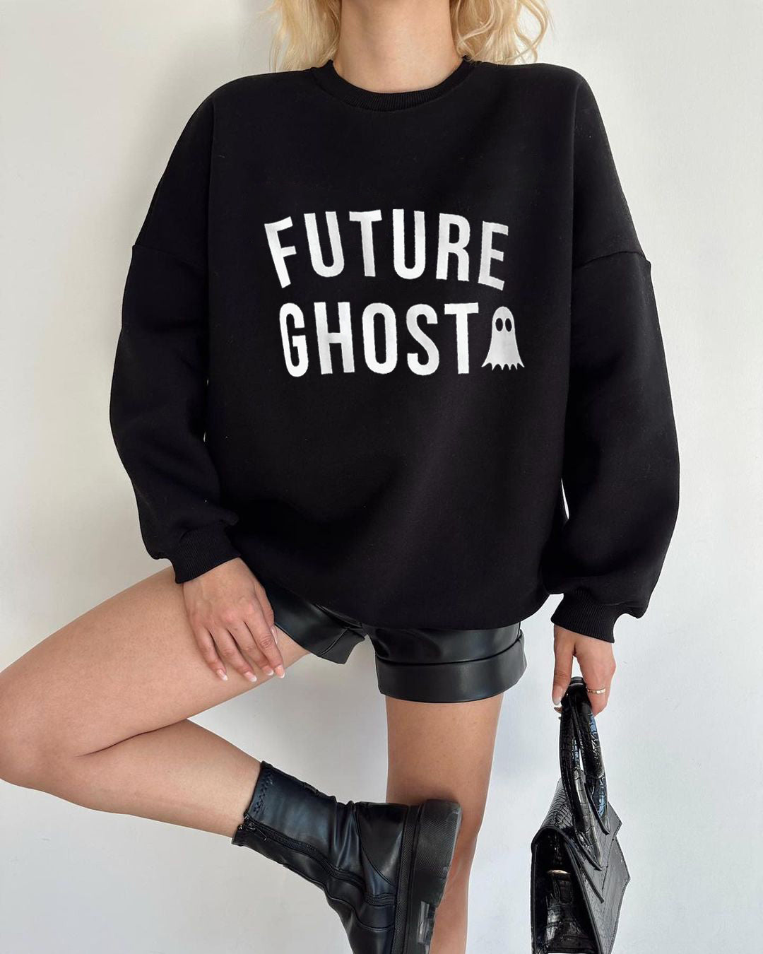 "FUTURE GHOST" Fluorescent Graphic Casual Pullover