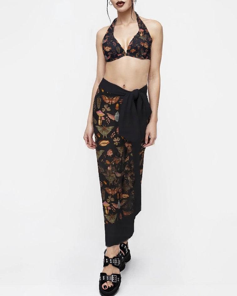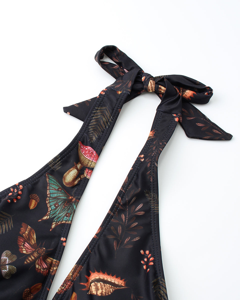 Mushroom Wonderland And Butterfly Family Pattern Print Bikini Set