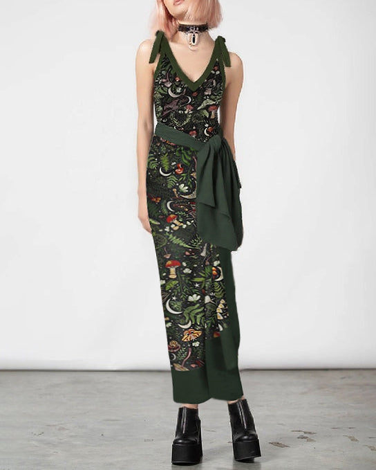 Mushrooms Forest Printed V-Neck One Piece and Sarong