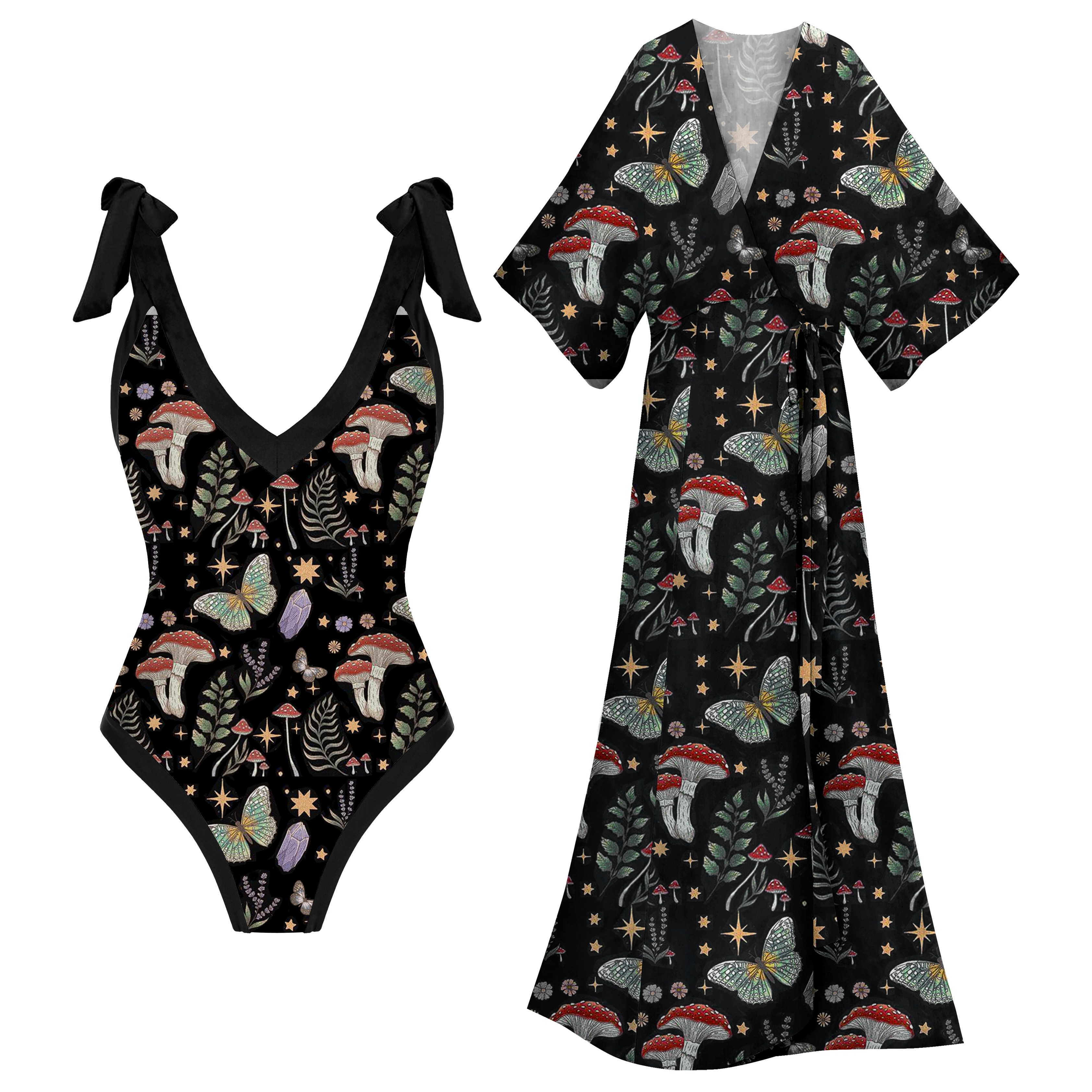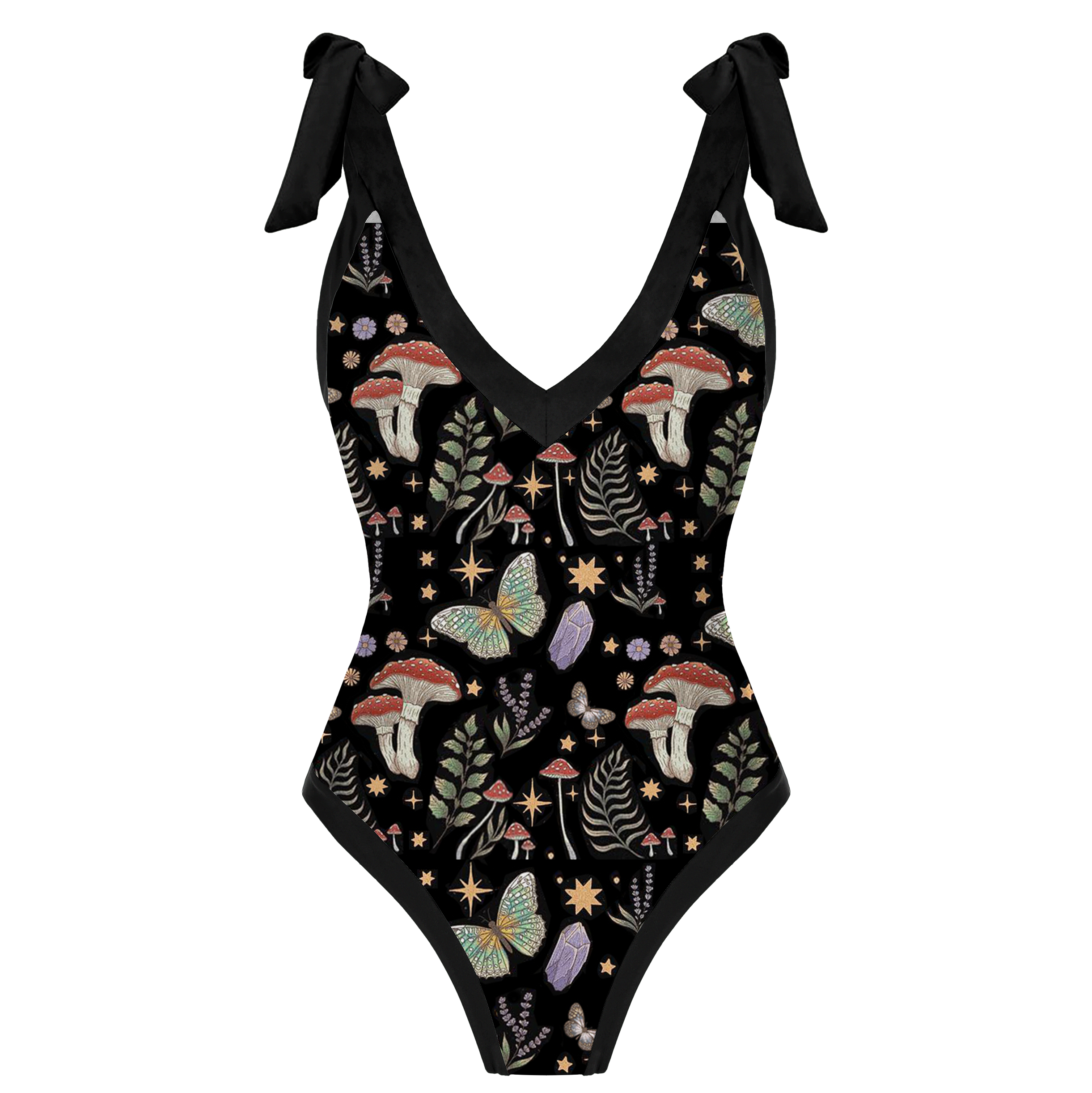 Mysterious Mushroom Paradise Print Halter One Piece