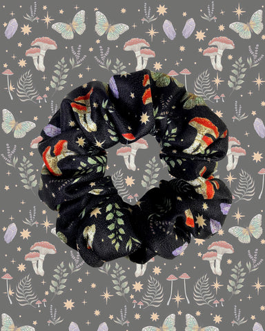 Mysterious Mushroom Paradise Printed Hand-Made Scrunchie