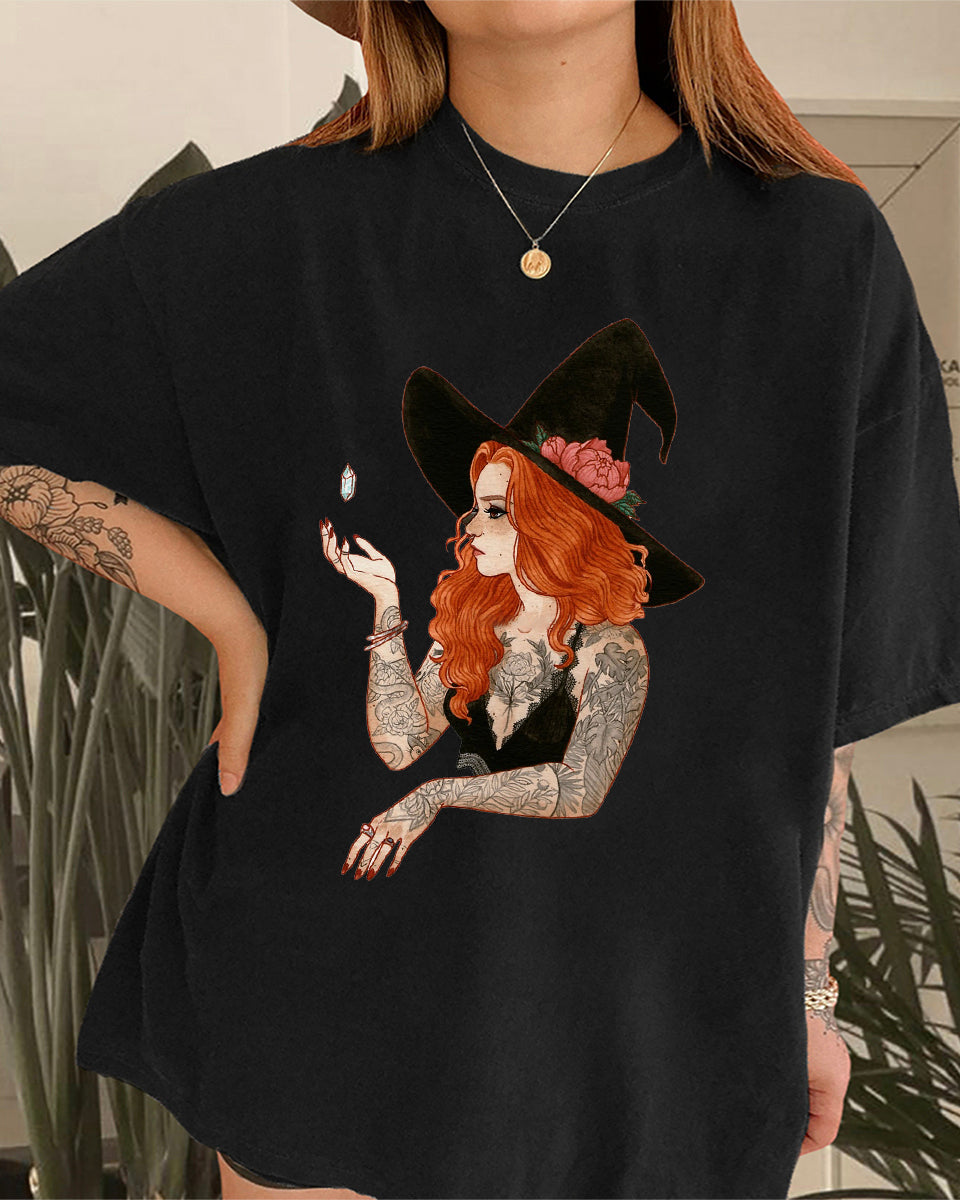 Mysterious Tattoo Witch Print T-Shirt