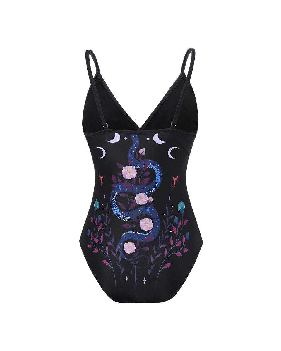 Mystical Snake And Purple Moon Graphic Print V-neck One-piece